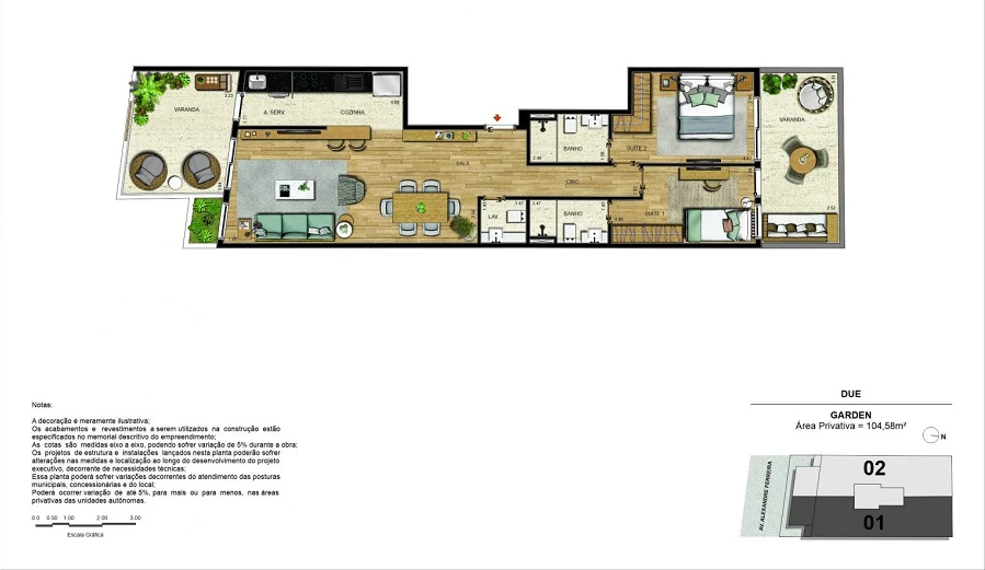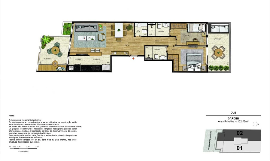 Apartamentos garden com 02 suítes com 104m²